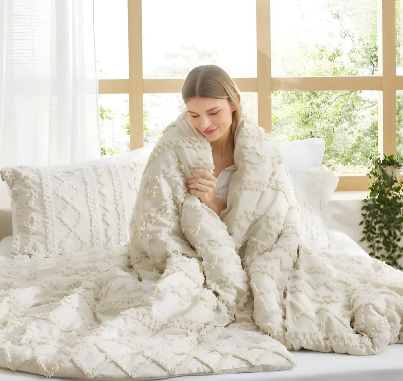 Unsere Bettdecke ist so konzipiert, dass die Luft frei zirkulieren kann, sodass Sie bei Wärme kühl und bei Kälte kuschelig warm bleiben.